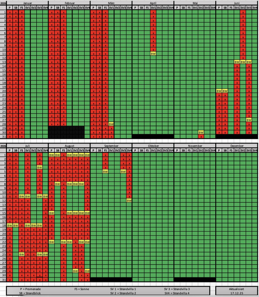 Wir nehmen gerne Ihre Buchung für 2025 entgegen. Freuen Sie sich auf erholsame Tage an der Ostsee.